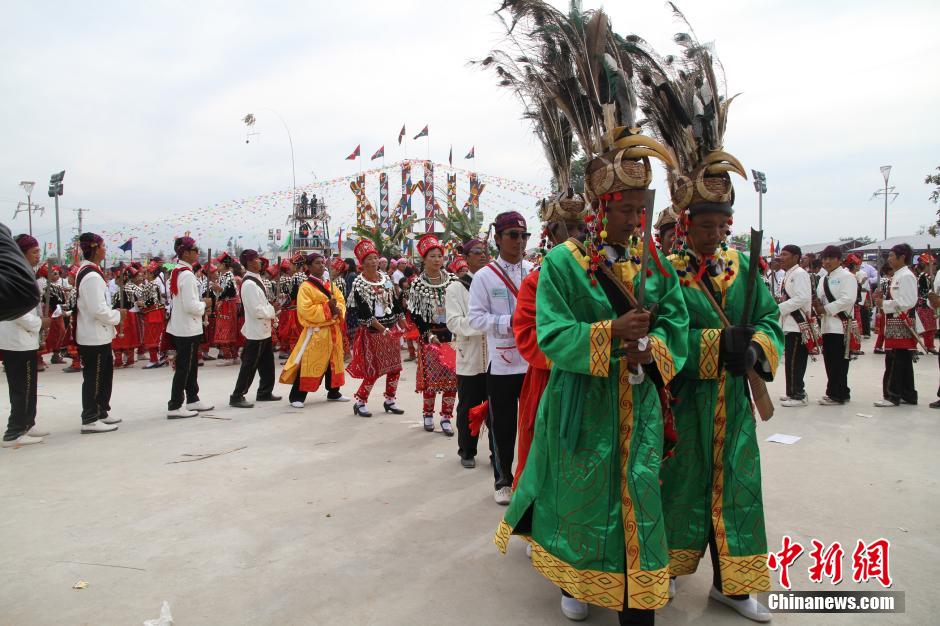 12月9日,为了庆祝缅甸木姐市景颇族文化活动室落成以及景颇族新米节,木姐地区近千人跳起了“目脑纵歌”。目脑纵歌,是景颇族的传统节日,意思是"大伙跳舞"。一般在农历正月十五日举行,此次为提前举行。中新社发 吴华丽 摄