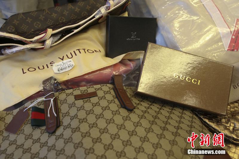 当地时间2013年12月10日,美国洛杉矶警方召开记者会,公开展示近期查获的一批假冒名牌圣诞礼物,以提醒民众挑选礼物的时候要谨防购买到造价商品。图片来源:东方IC 版权作品 请勿转载
