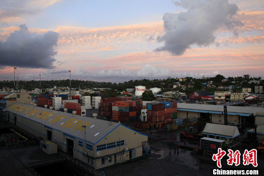 12月11日,夕阳下的斐济苏瓦港口码头。中新社发 孙自法 摄