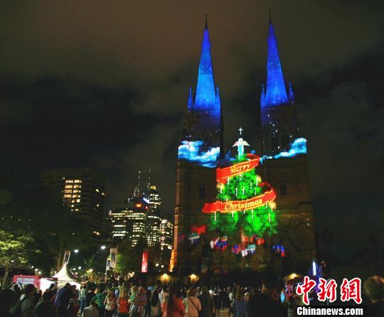 当地时间12月16日晚,澳大利亚悉尼圣玛丽大教堂灯光璀璨夺目,闪耀夜空,同时伴以美妙的音乐,给人赏心悦目的视听享受,吸引着来自各国的游客。