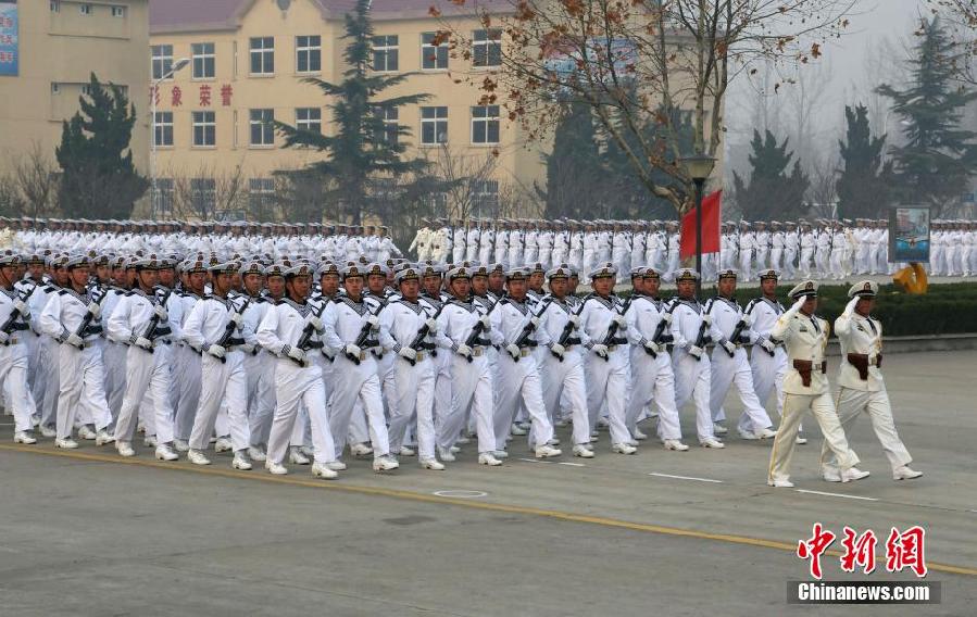 12月5日上午,北海舰队2013年新兵入伍训练结业阅兵典礼在某训练基地隆重举行。济南军区副司令员兼北海舰队司令员田中中将出席典礼,并检阅了22个方队的2300余名新兵。中新社发 王松岐 摄