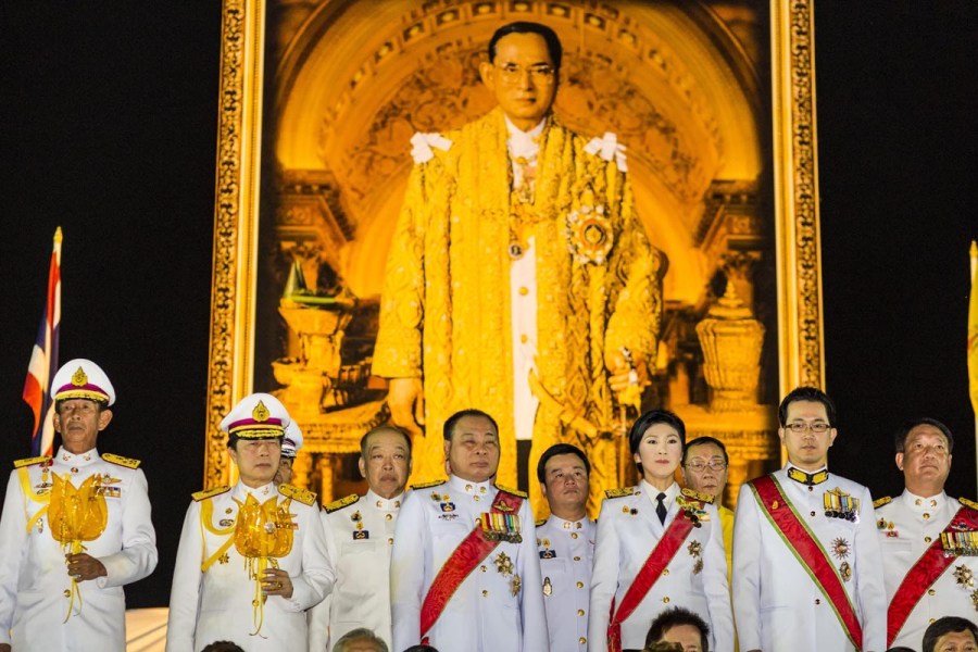 当地时间2013年12月5日,泰国曼谷,泰国国王普密蓬86岁生日,总理英拉亲自献唱国歌为国王祝寿。