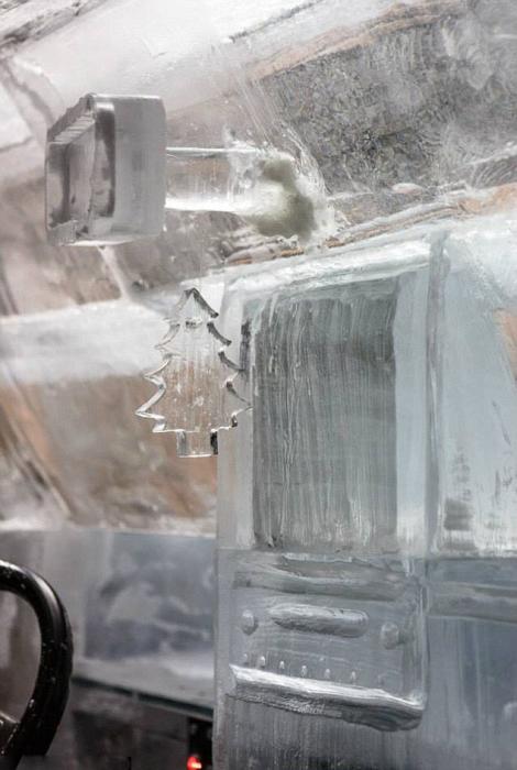据英国《每日邮报》1月1日报道,近日,加拿大一冰雕团队用1.1万多磅(约5吨)冰打造出一辆可驾驶的“水晶汽车”,这辆汽车使用了正常汽车的底盘,配上用冰打造的外壳,“车牌”、“空气净化器”等部件一应俱全。