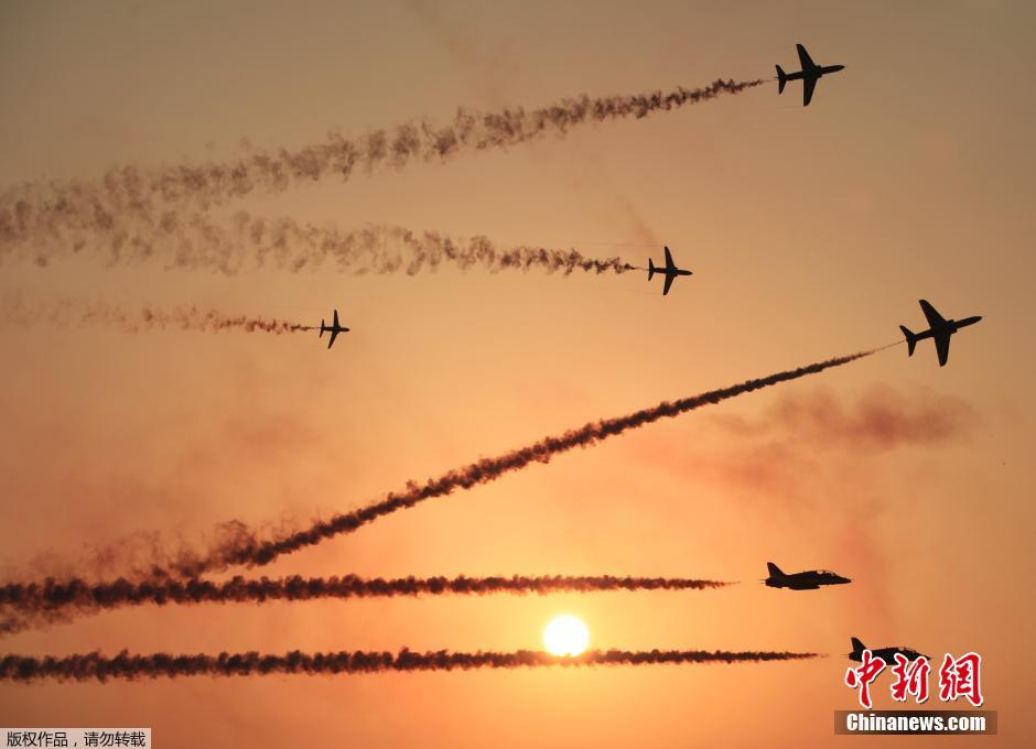 当地时间2014年1月16日,巴林麦纳麦,巴林国际航展在当地开幕,飞行表演异彩纷呈。