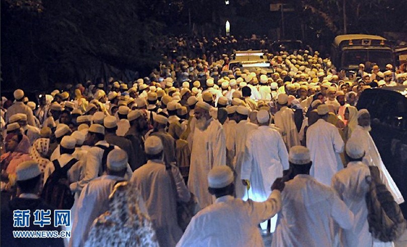 1月18日,人们聚集在印度孟买发生踩踏事故的现场。印度警方说,18日凌晨,印度最大城市孟买南部吊唁过世穆斯林精神领袖的活动中发生踩踏事故,造成至少18人死亡,50多人受伤。 新华社发