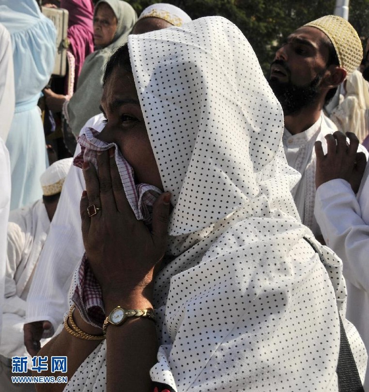 1月18日,在印度孟买举行的吊唁过世穆斯林精神领袖的活动中,一名女子掩面哭泣。印度警方说,18日凌晨,印度最大城市孟买南部吊唁过世穆斯林精神领袖的活动中发生踩踏事故,造成至少18人死亡,50多人受伤。新华社记者汪平摄