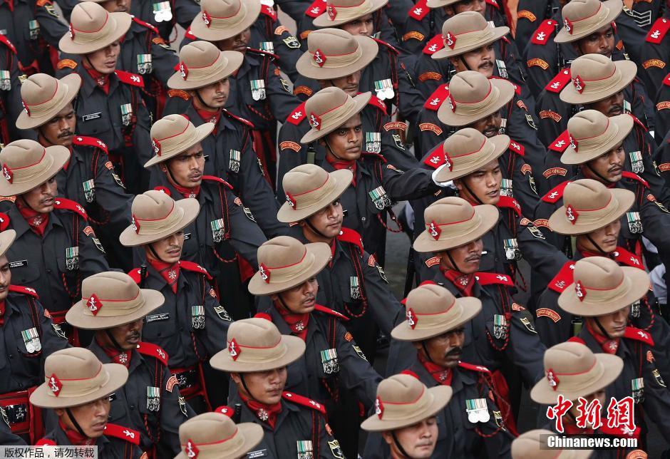 当地时间2014年1月23日,印度新德里举行共和国日大阅兵彩排。本月26日印度即将迎来共和国日大阅兵。