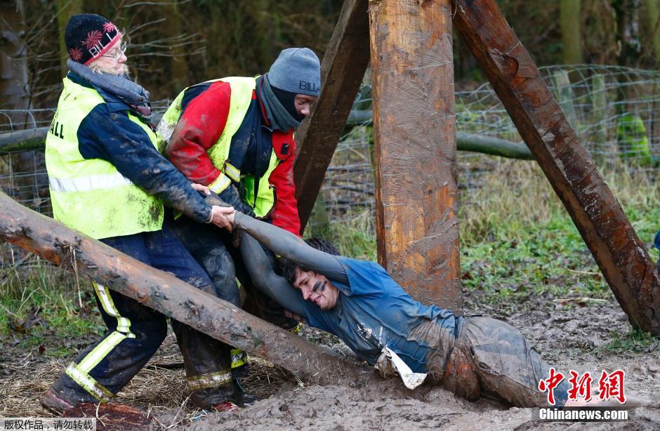 英国举行“硬汉”比赛 选手挑战“泥泞地狱”