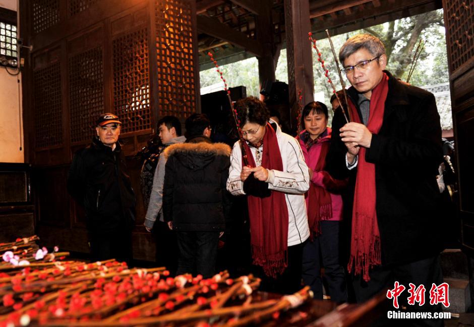 2月6日是农历正月初七,成都杜甫草堂举办甲午年“人日游草堂”祭拜诗圣杜甫活动。手持梅花,庄严肃立的祭祀队伍在盛装仪仗的引领下缓缓步入祭祀主会场。在行过净手之后,主祭人神情肃穆,仪态庄重分别完成了奠帛、诵读祭文等环节,童声诵读的祭文,余音袅袅,犹如天籁,沁人心脾,朝圣队伍和各界群众在音乐的伴奏下向诗人塑像三鞠躬,并和主祭人一起敬献了手中的梅花,以此告慰诗人在天之灵,整个祭祀活动达到了高潮。安源 摄