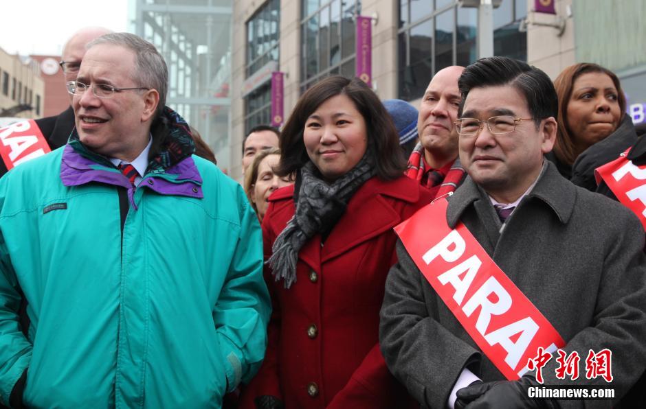 2月8日,纽约皇后区华埠法拉盛地区举行盛大的新春花车大游行,欢庆中国春节。一年一度的法拉盛新春大游行始于1996年,现已成为纽约市的一个多元化和多族裔参加的新春大型活动。中新社发 阮煜琳 摄