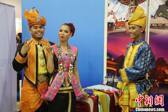 2月14日,第21届菲律宾旅游展览会在菲首都大马尼拉地区帕赛市开幕,吸引大批民众入场。本届旅游展主题定为“爱生活,爱旅行”,为期三天,参展商超过240家,涉及航空、船运、酒店、度假村及旅行社等各类旅游相关企业,是菲律宾有史以来规模最大的一次旅展。图为马来西亚展台前身着民族服装的工作人员。中新社发 张明 摄