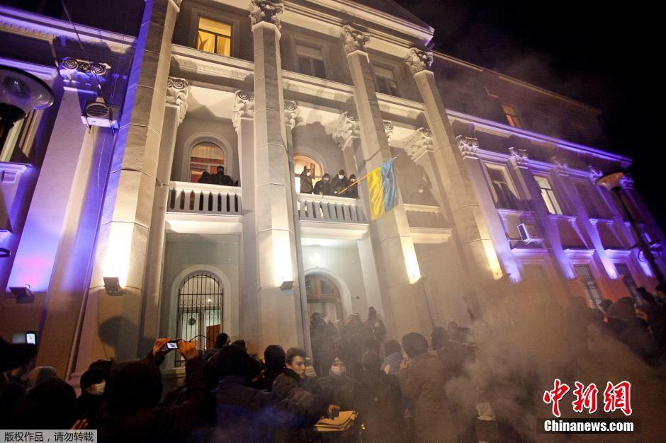 乌克兰暴力冲突持续 示威者攻击政府建筑焚烧文件