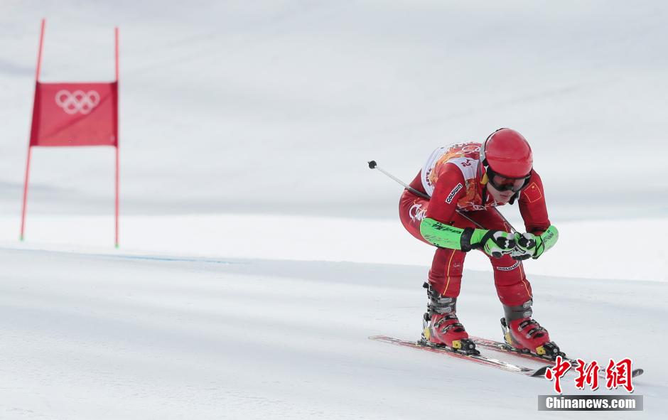 当地时间2月19日,在索契冬奥会高山滑雪男子大回转比赛中,中国选手张宇欣第二轮失误没有完赛,最终没有成绩。中新社发 刘关关 摄
