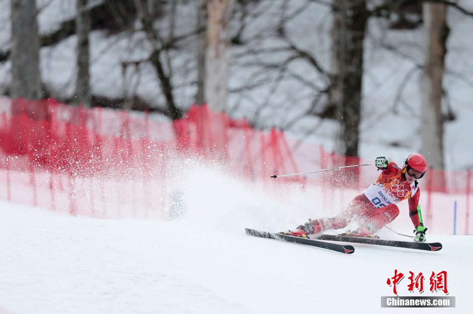 当地时间2月19日,在索契冬奥会高山滑雪男子大回转比赛中,中国选手张宇欣第二轮失误没有完赛,最终没有成绩。中新社发 刘关关 摄