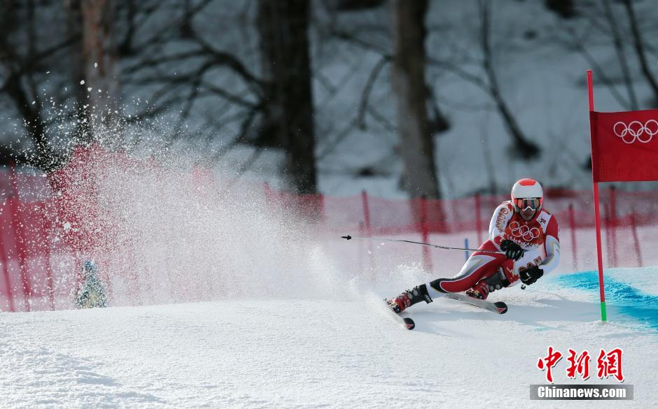 当地时间2月19日,在索契冬奥会高山滑雪男子大回转比赛中,加拿大选手PRIDY Morgan在比赛中“卷起千层雪”。中新社发 刘关关 摄