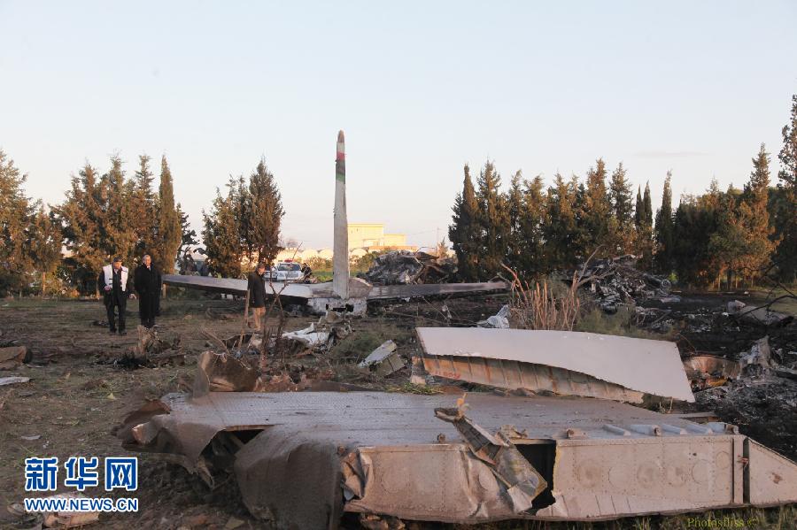 据突尼斯媒体报道,一架利比亚军机当地时间21日凌晨1时30分坠毁在突东北部的一片农田里,机上11人全部遇难。图为2月21日,在突尼斯东北部古兰巴利耶,人们在坠机现场查看。新华社发(阿代尔摄)