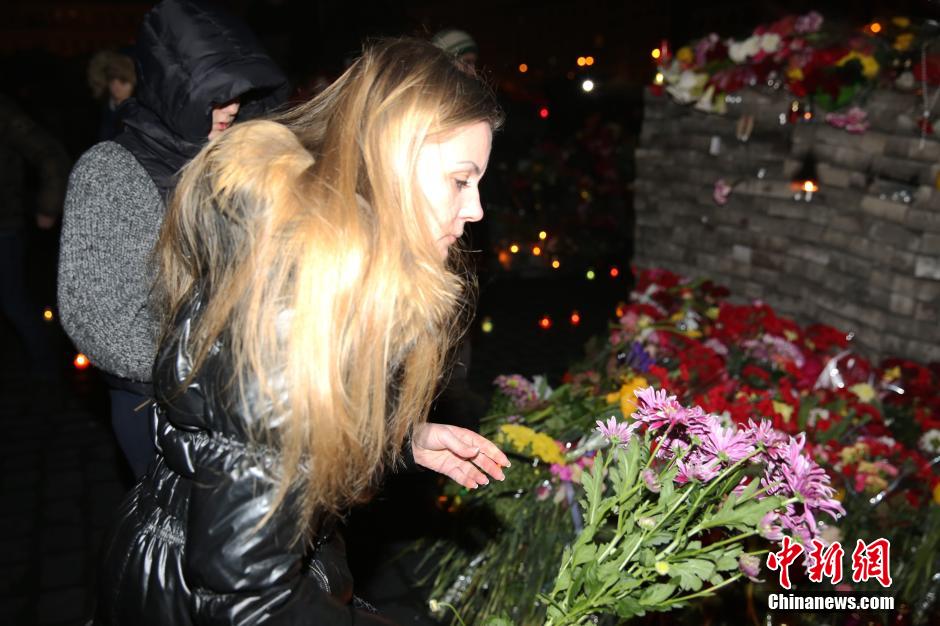2月23日晚,一名女孩在基辅独立广场为此前广场上冲突的死难者献花。2月20日,乌克兰示威者与防暴警察在独立广场上爆发激烈冲突,造成多人丧生。中新社发 王修君 摄
