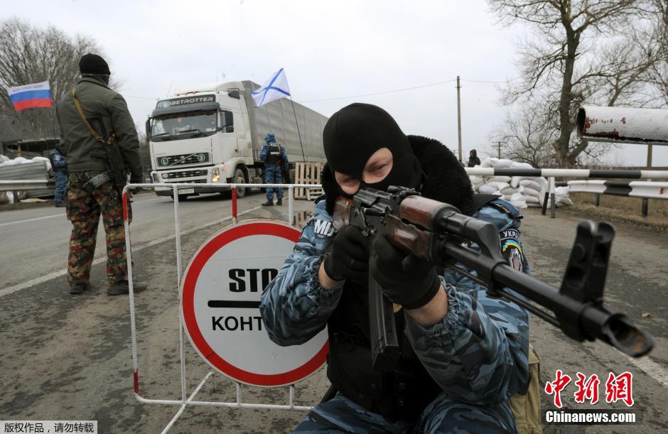 据外媒2月28日报道,遭乌克兰内务部解散的“别尔库特”特种部队成员在Armyansk集结,并设立检查站,阻止乌克兰武装力量进入克里米亚境内。同时他们在检查站上升起了俄罗斯国旗。