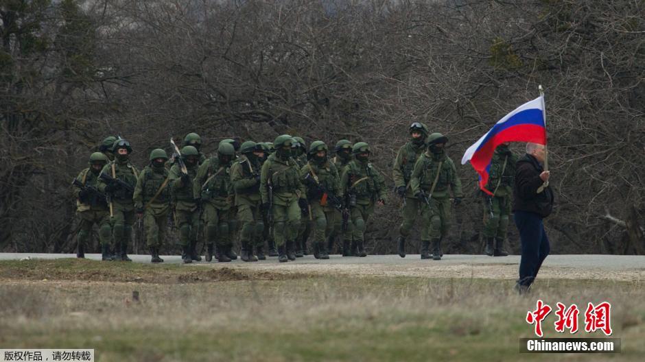 俄军进入克里米亚 乌民众挥舞俄罗斯国旗“带路”
