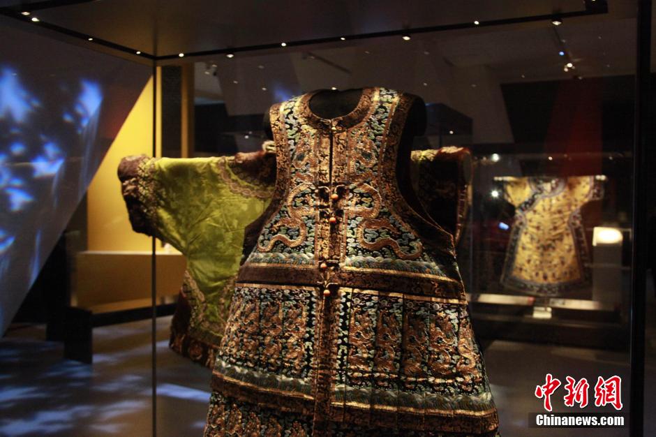 3月5日,由中国故宫博物院与北美第五大博物馆——加拿大皇家安大略博物馆共同举办的“紫垣撷珍—明清宫廷生活文物展”在多伦多开幕。本次展览是继2010年中国秦兵马俑展之后,加拿大举行的又一中国文物大展。展览从3月8日开展,持续半年至9月1日。根据介绍,展览展出共250件文物,涵盖纺织品、书画、书籍、公文、兵器与盔甲等,其中80多件文物是首度走出紫禁城。“紫垣撷珍—明清宫廷生活文物展”是作为加拿大皇家安大略博物馆成立100周年的主打展览予以呈现。图为展出的皇宫服饰。中新社发 徐长安 摄