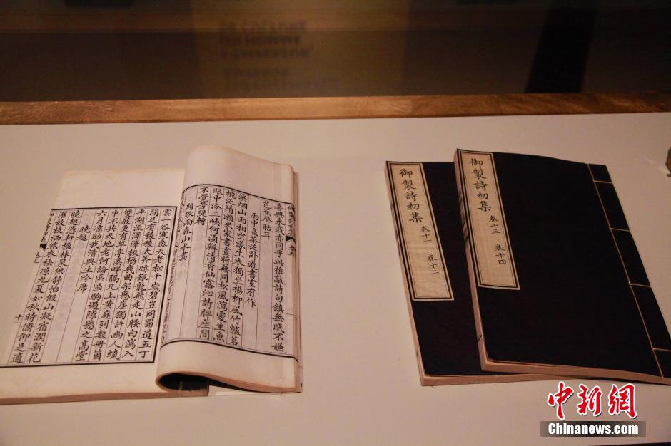 3月5日,由中国故宫博物院与北美第五大博物馆——加拿大皇家安大略博物馆共同举办的“紫垣撷珍—明清宫廷生活文物展”在多伦多开幕。图为展出的御制诗集。中新社发 徐长安 摄