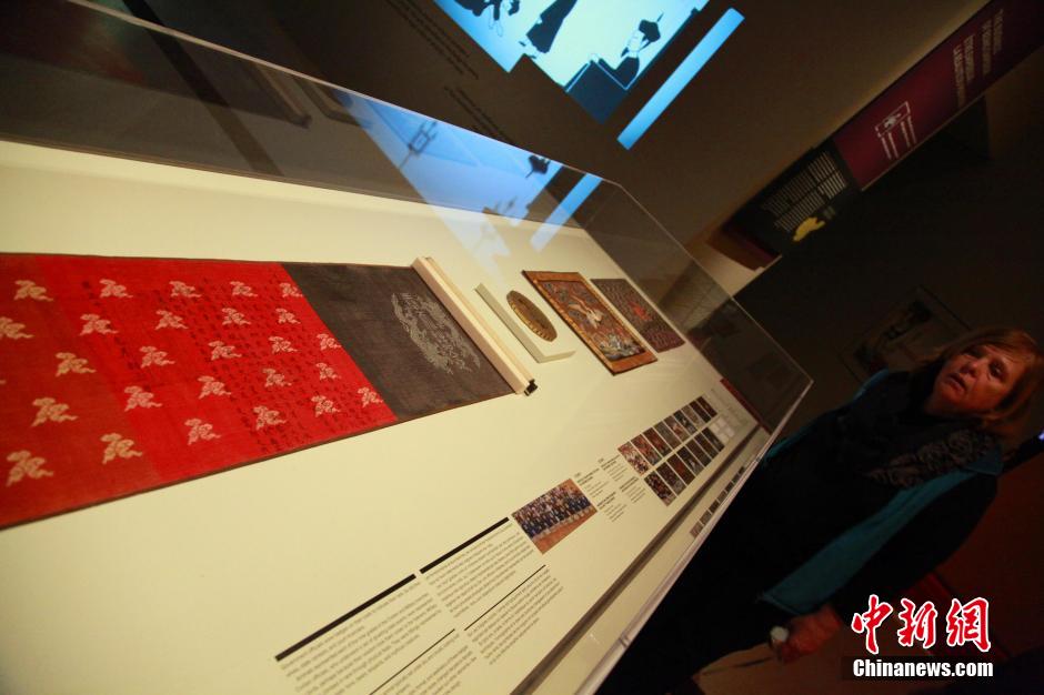 3月5日,由中国故宫博物院与北美第五大博物馆——加拿大皇家安大略博物馆共同举办的“紫垣撷珍—明清宫廷生活文物展”在多伦多开幕。图为游客在参观展出的皇帝圣旨。中新社发 徐长安 摄