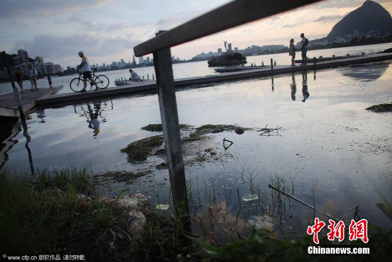 巴西里约热内卢,污染严重的罗德里戈湖。这里将是2016奥运会帆船比赛和残奥会皮划艇比赛的举办地。接近70%的里约下水道的污水未经处理就会排入这片水域。里约奥委会表示将在奥运会举办前对其进行治理。图片来源:CFP视觉中国