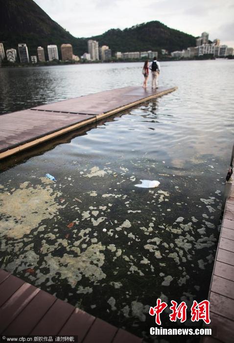 巴西里约热内卢,污染严重的罗德里戈湖。这里将是2016奥运会帆船比赛和残奥会皮划艇比赛的举办地。接近70%的里约下水道的污水未经处理就会排入这片水域。里约奥委会表示将在奥运会举办前对其进行治理。图片来源:CFP视觉中国