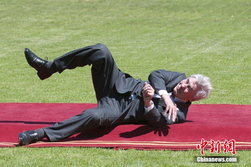 当地时间2014年3月11日,智利维尼亚德尔马,荷兰前首相吕贝尔斯抵达总统府出席午宴时在红毯上摔倒。据了解,吕贝尔斯此行是为了出席智利总统米歇尔·巴切莱特的就职仪式。图片来源:CFP视觉中国