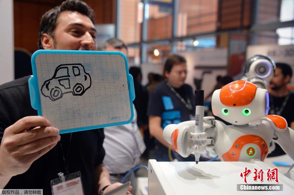 法国里昂机器人创新峰会举行 机器人画画引围观
