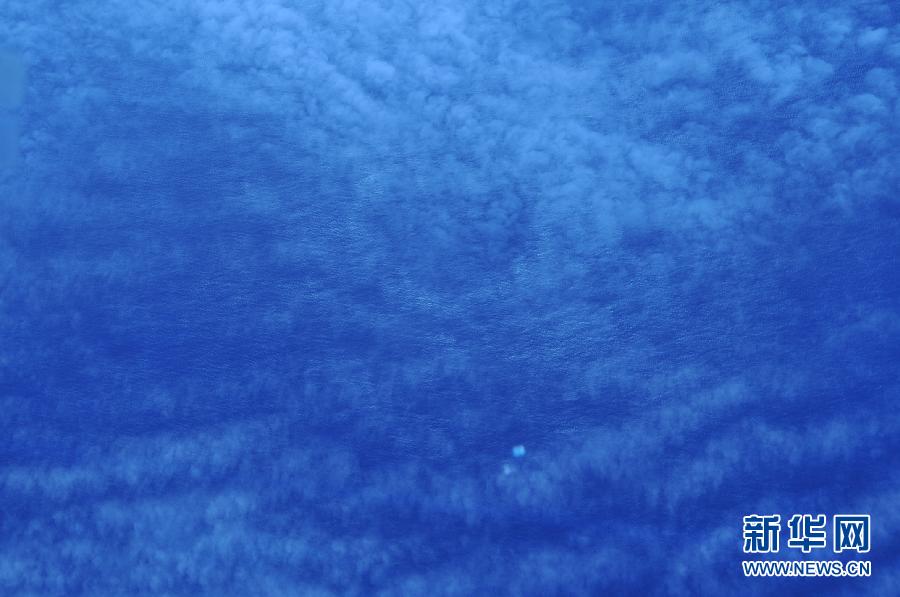 3月24日,中国空军两架伊尔-76运输机赴南印度洋搜寻马航失联客机,在任务区域发现疑似碎片目标。这是3月24日从高空拍摄的两块疑似碎片目标。新华社记者 黄书波 摄 图片来源:新华网