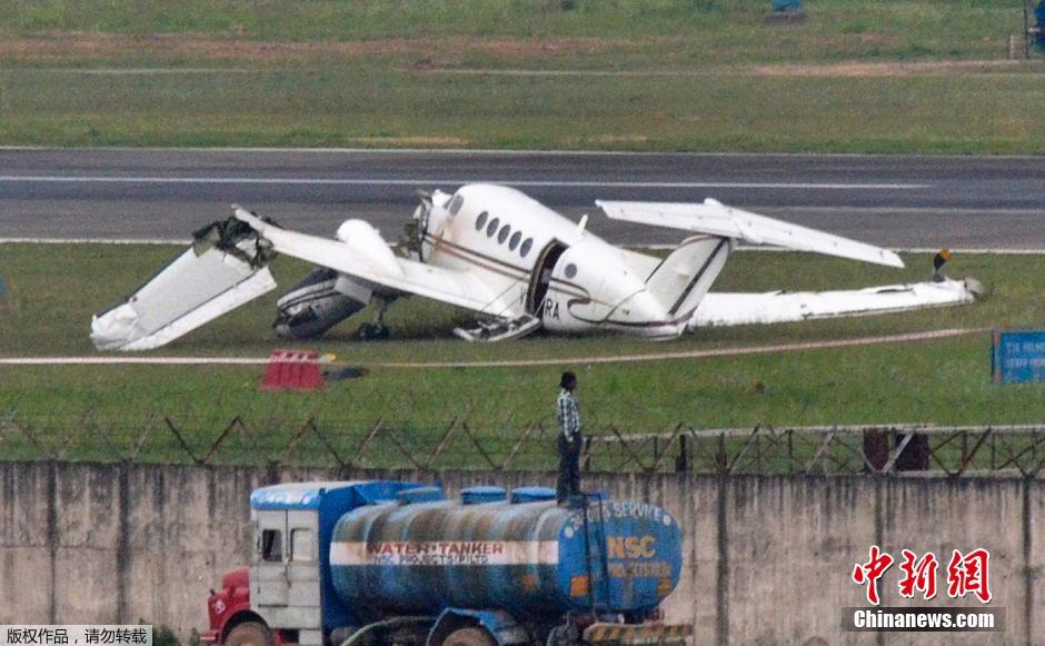 当地时间2014年3月27日,印度昌迪加尔,印度哈里亚纳邦一架政府飞机在机场坠落。据悉,当天这架载有10人的飞机左翼与地面相撞,目前伤亡情况未知。