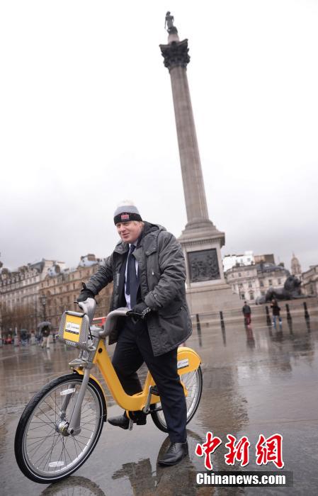 当地时间3月26日,伦敦市长鲍里斯·约翰逊骑单车亮相街头,为“巴克莱自行车出租计划”(Barclays Cycle Hire)宣传助阵。据悉,该计划是伦敦交通局为在伦敦中心作短途旅程推出的新自助公共自行车分享计划。