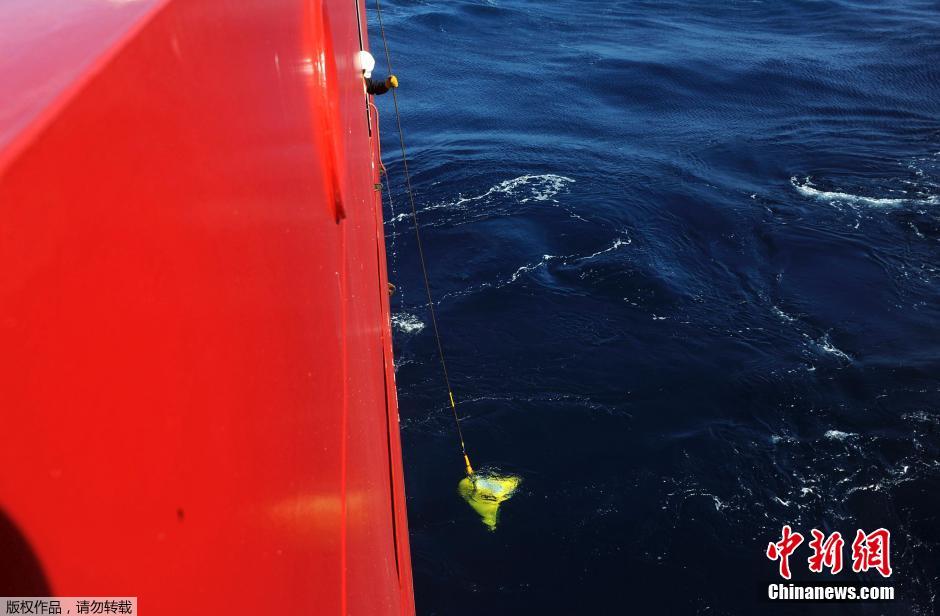 4月4日美国海军发布照片(拍摄时间不详)显示,美国为马航MH370搜索任务提供的“拖曳声波定位仪”和“金枪鱼”自动水下航行器进行浮力测试和操作运行测试。