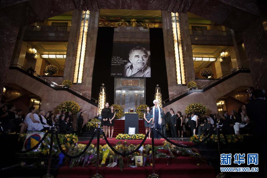 4月21日,在位于墨西哥城的墨西哥国家美术宫,人们悼念已故诺贝尔文学奖得主加西亚·马尔克斯。