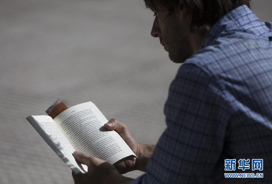 4月22日,在阿根廷布宜诺斯艾利斯街头,一名等待公车的男子用读书打发时间。新华社发(马丁·萨巴拉摄)