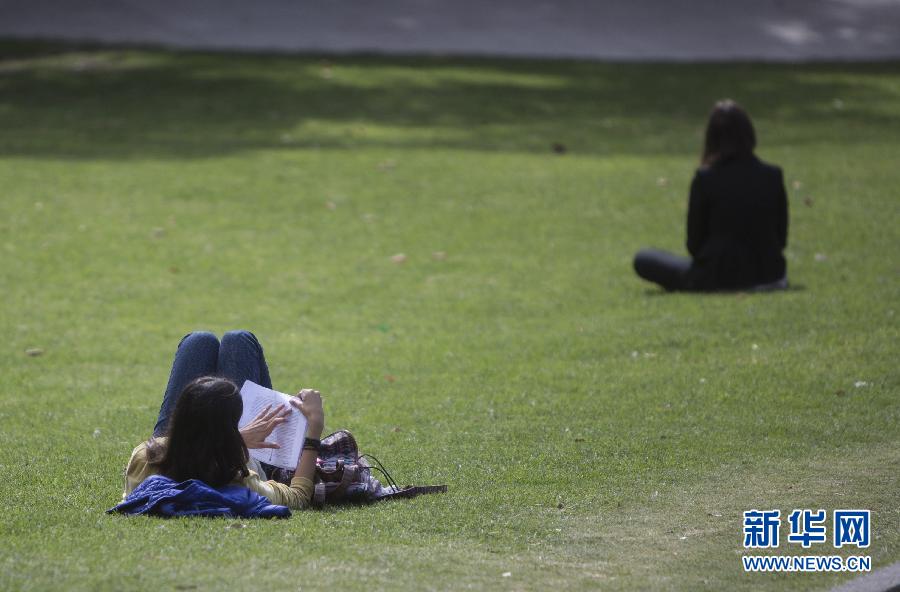 4月22日,一名女子在阿根廷布宜诺斯艾利斯一所公园里读书。新华社发(马丁·萨巴拉摄)