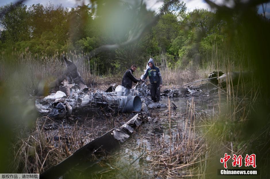 乌克兰军方摧毁自家直升机 民众捡飞机残骸零部件