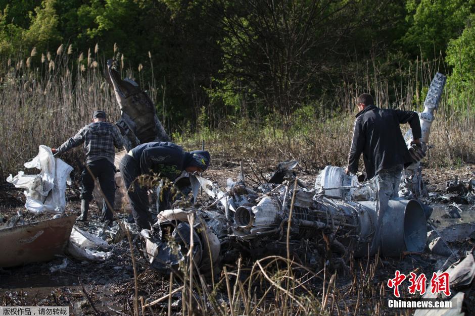 当地时间2014年5月6日,乌克兰Raigorodok,乌克兰军方直升机被摧毁,当地居民捡直升机零部件。该飞机原本是接受命令于周一缓解斯拉维扬斯克的紧张局势,结果在Raigorodok紧急迫降,随后被乌克兰军方摧毁,目的是不让其落入叛乱部队手中。