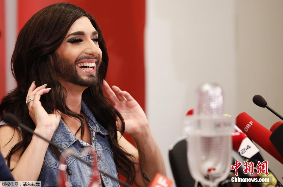 5月11日,在奥地利维也纳机场,“大胡子小姐”孔奇塔·武斯特回国现身机场受热捧。有“大胡子小姐”之称的孔奇塔·武斯特10日在丹麦哥本哈根赢得2014年欧洲电视网歌唱大赛的冠军,并在11日返回奥地利时受到了支持者的热烈欢迎。欧洲电视网歌唱大赛被称为欧洲级别最高、举办时间最长的歌唱比赛之一。孔奇塔·武斯特原名汤姆·诺伊维尔特,其身份以及变装皇后的形象在比赛过程中饱受争议。奥地利右翼政党奥地利自由党领导人称孔奇塔获胜“荒谬”。奥地利总统菲舍尔则称武斯特获胜是宽容在欧洲的胜利。