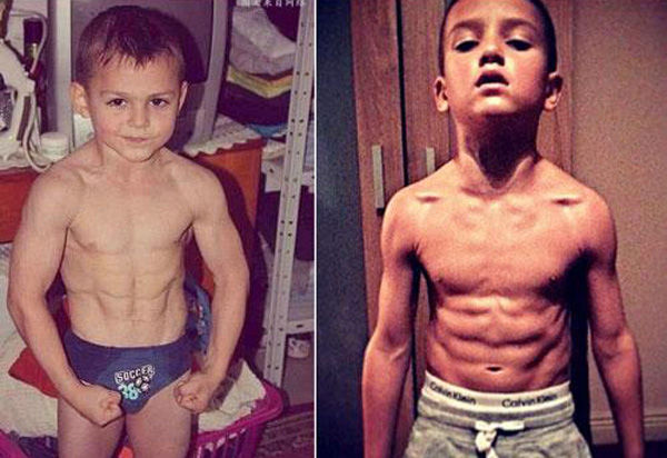 近日,一组分别年仅6岁和8岁的正太劲爆“肌肉”照火爆网络。他们是6岁罗马尼亚男孩朱利亚诺·斯特勒和英国8岁的布兰登·布莱克,各自拥有令许多成年人望尘莫及的强健腹肌和结实臂膀。网友发出感叹:这肌肉太凶残了,无独有偶!个子小小的布兰登·布莱克体重才50斤,然而满身的肌肉被赞迷你版的阿诺德·施瓦辛格。