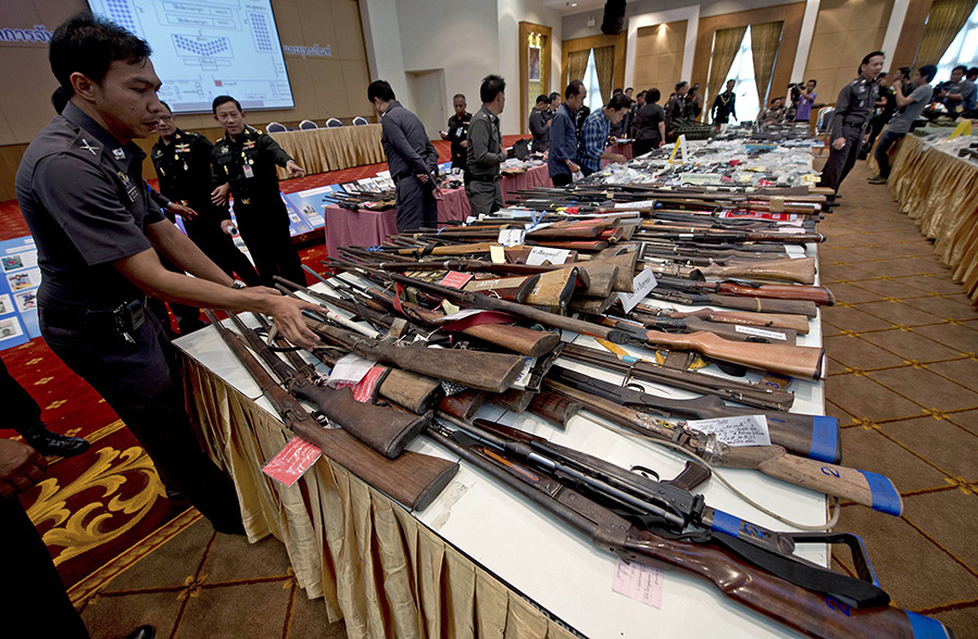 据泰国“全国维持和平秩序委员会”公共关系中心介绍,自5月22日军方接管政权到6月25日,泰国收缴大量枪支及弹药和爆炸装置。维和委员会主席巴育表示将继续打击违法持有和走私枪支弹药等武器。