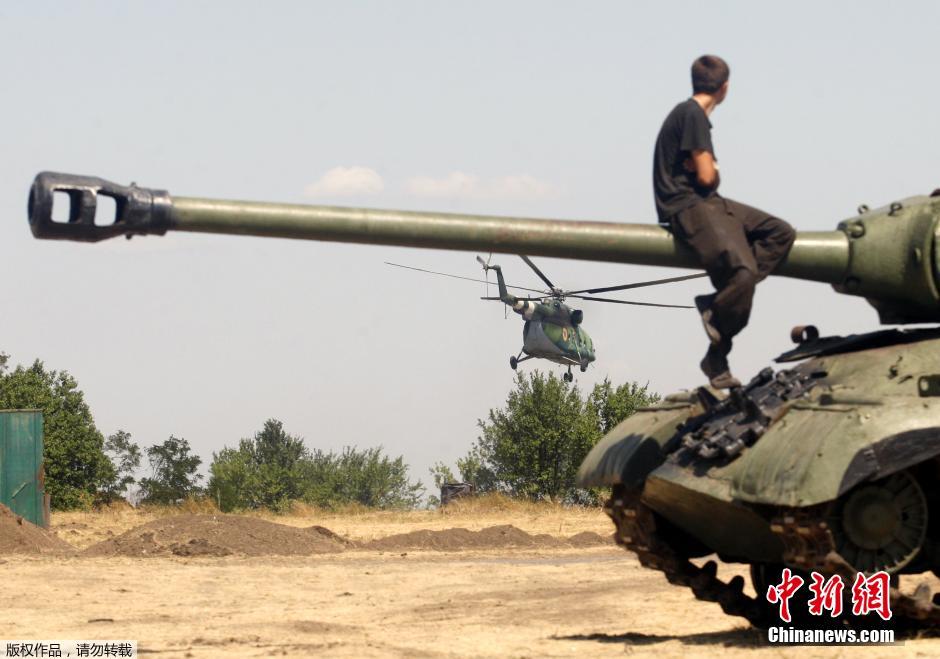 当地时间2014年8月9日,乌克兰顿涅茨克,乌克兰政府军坦克。据一名亲俄武装高级指挥官称,乌克兰政府军已经夺取Krasnyi Luch镇,并将亲俄武装占领的最大城市顿涅茨克包围。