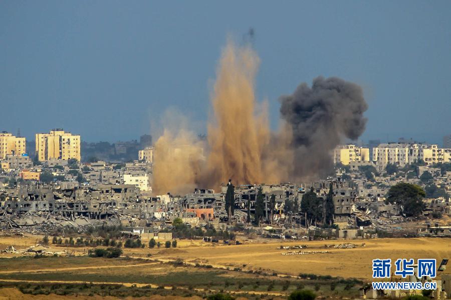 8月10日,加沙地带遭以色列军队袭击后冒起浓烟。新华社/基尼图片社