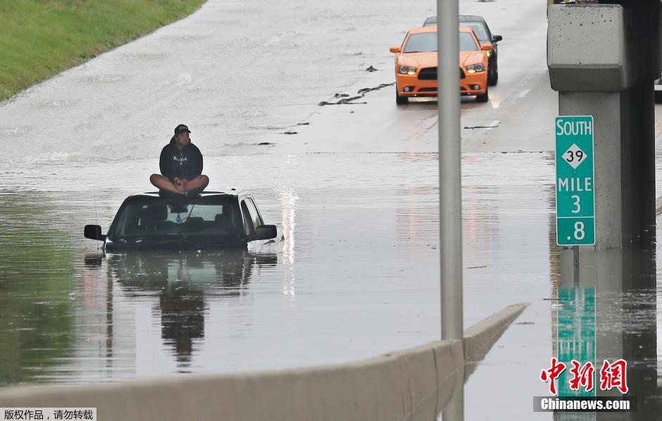 当地时间2014年8月12日,美国底特律当地迎来数十年最大降雨,街道、高速公路和房屋均被淹没,部分地区的路面下陷,成为一片汪洋。