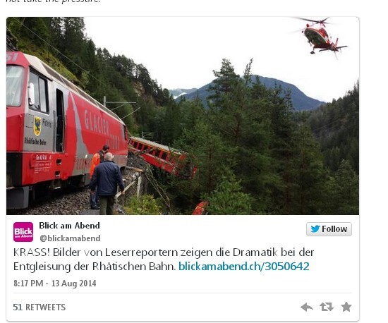 瑞士火车遭遇山崩脱轨致数节车厢滚下山崖 情况严重