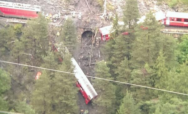 瑞士火车遭遇山崩脱轨致数节车厢滚下山崖 情况严重