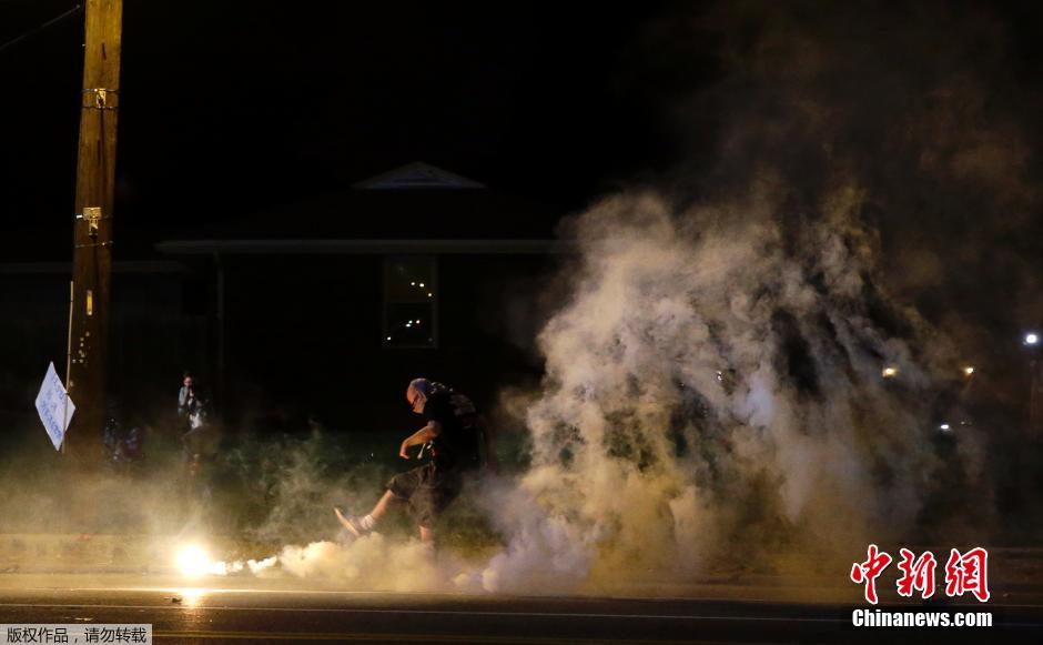 当地时间8月13日,美国密苏里州小城弗格森,民众发生大规模骚乱,警察动用催泪弹驱散抗议者,目前尚无人员伤亡报告。据警方称,发生骚乱的原因为8月9日在警车中一名叫迈克尔.布朗的18岁非洲裔青年与一名警官争夺手枪时被打死,这起事件在当地引发抗议。一些人走上街头,高喊口号,呼吁把那名警官绳之以法。抗议活动10日晚升级为骚乱。