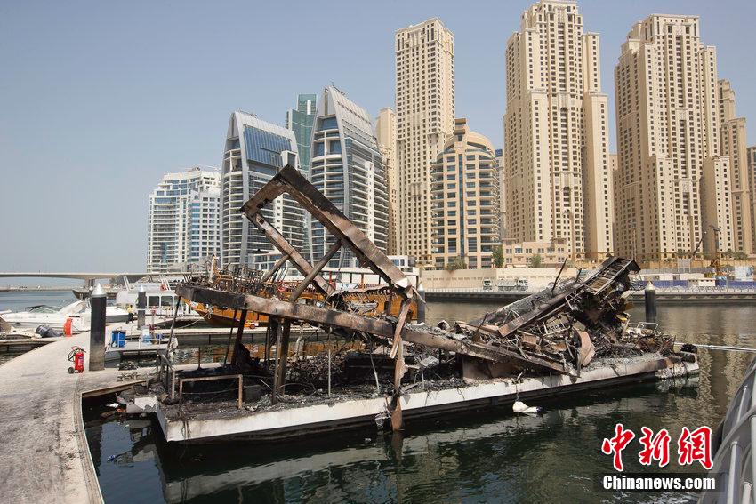 迪拜码头一艘餐厅船起火 食客跳窗逃生