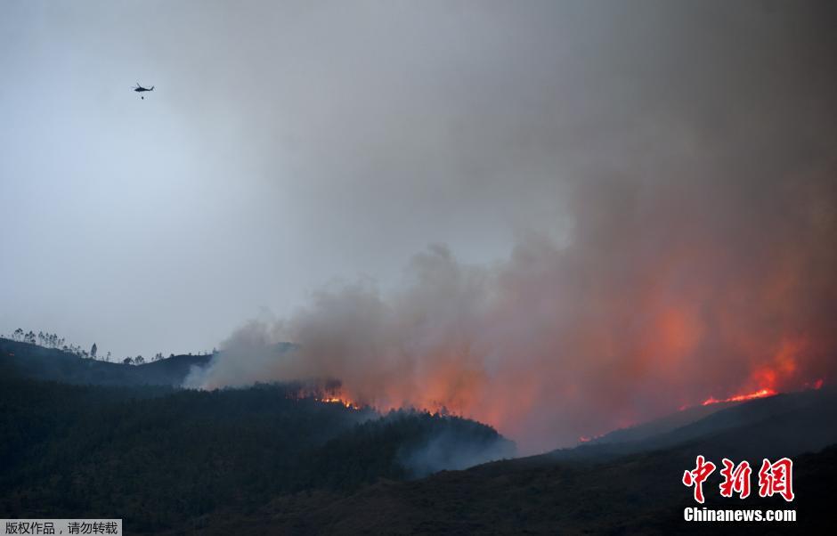 当地时间2014年8月15日,哥伦比亚Yumbo发生森林火灾,消防员连夜灭火。